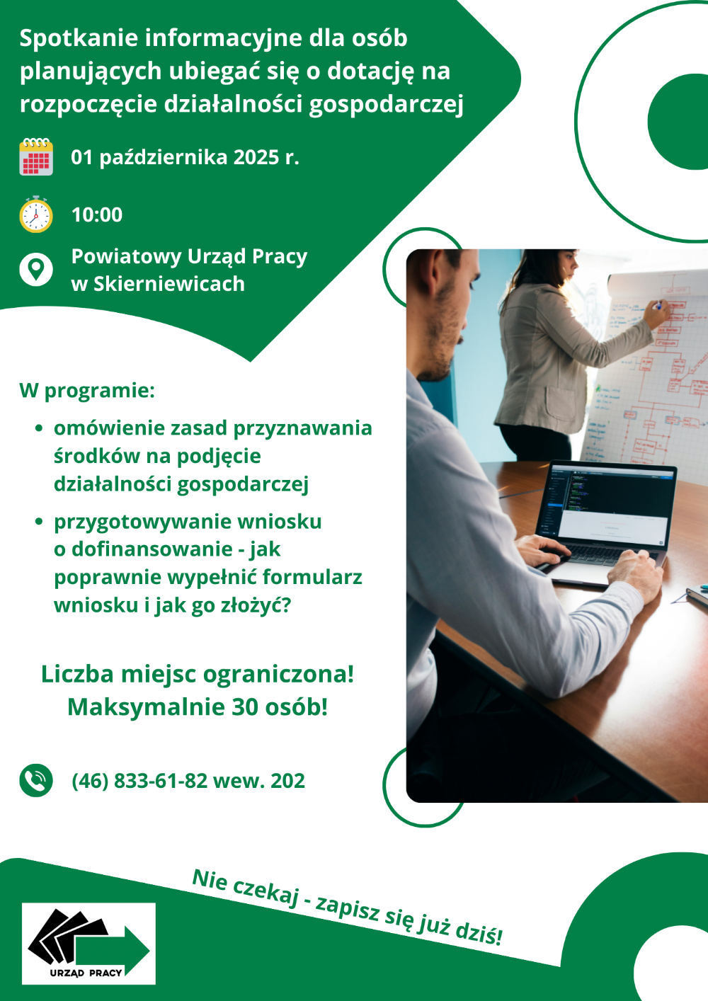 Spotkanie informacyjne - dotacje na działalność gospodarczą - 01.10.2025 r.